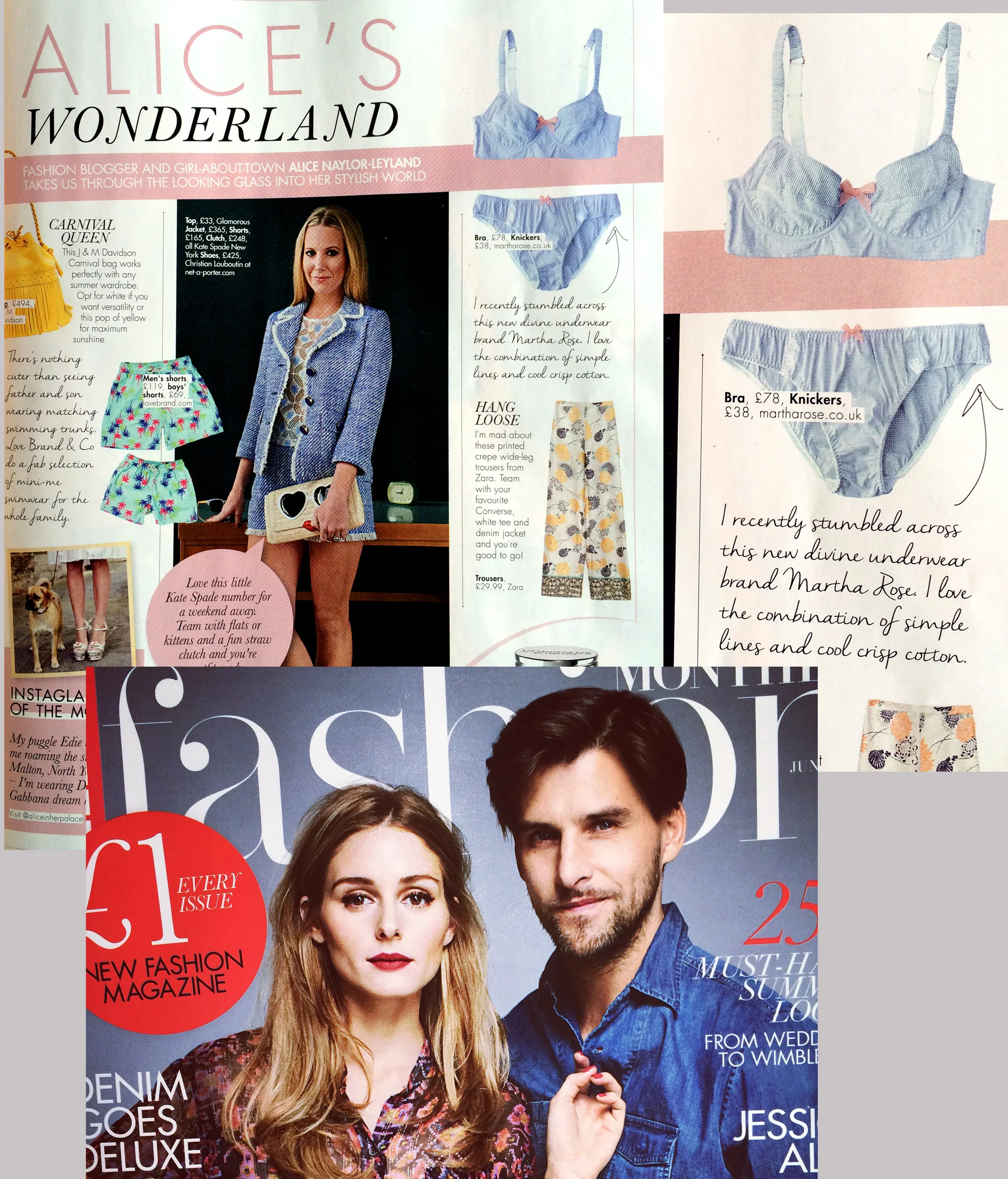 The lovely Alice Naylor-Leyland featured Martha Rose in her column in Hello Fashion Monthly, June issue.